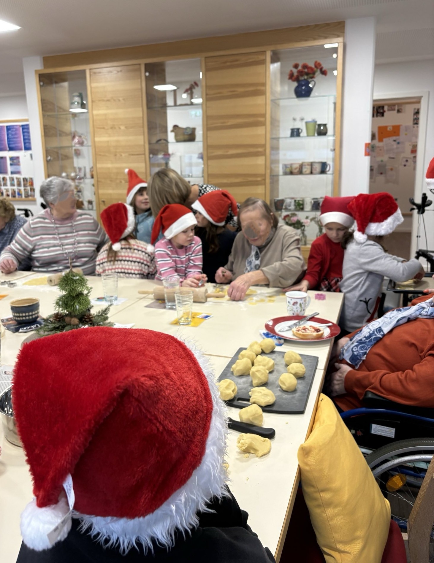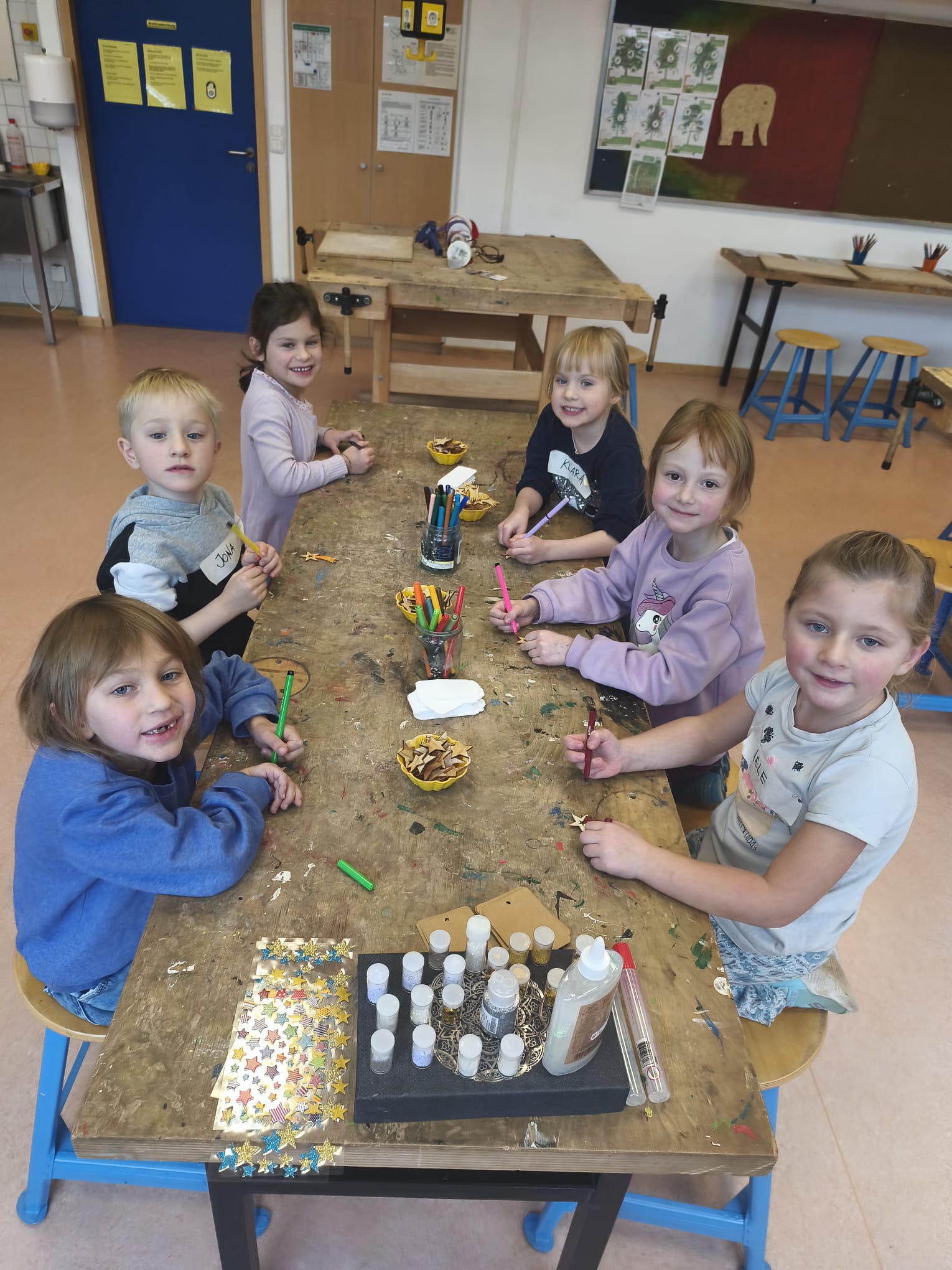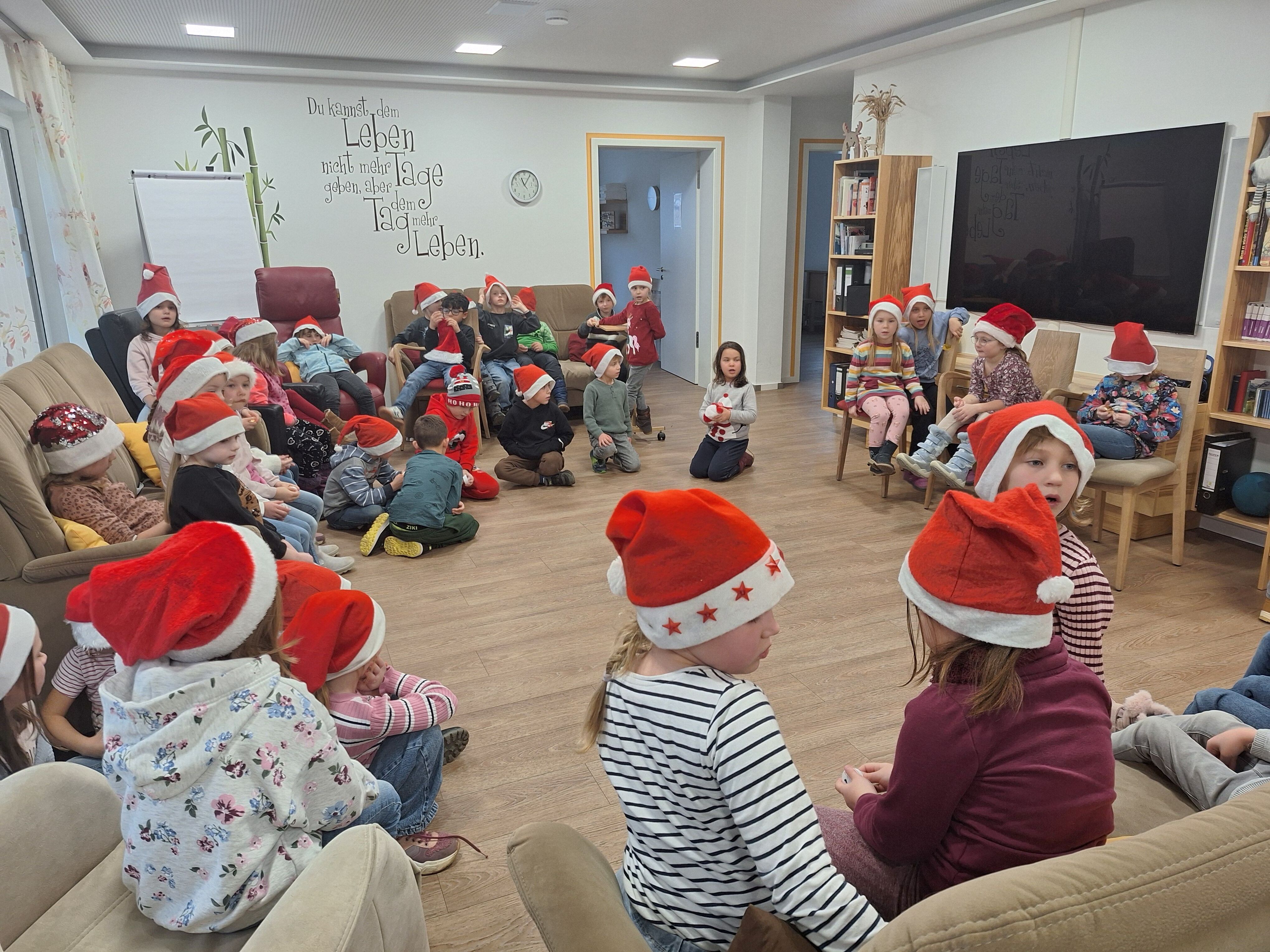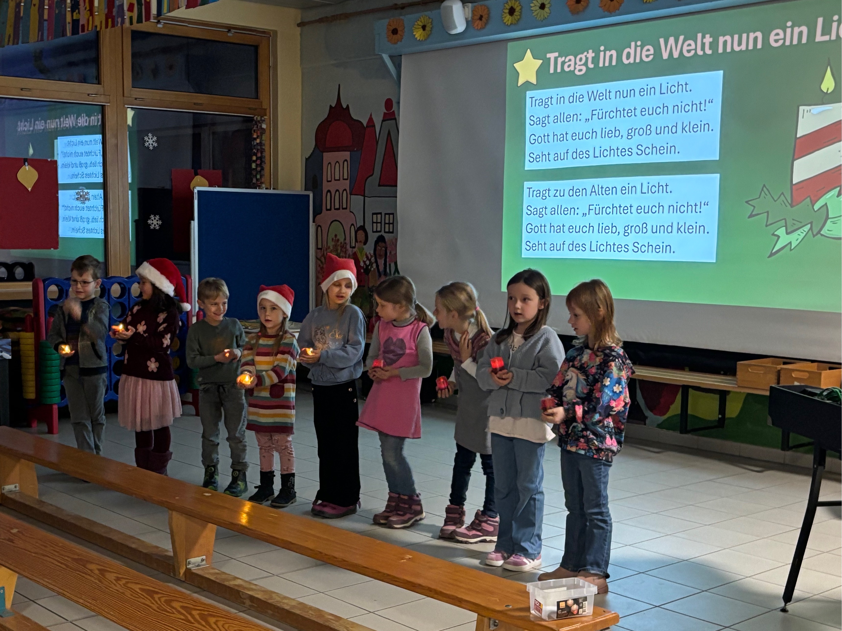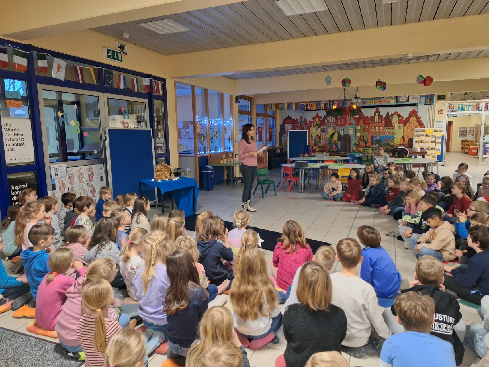 In der Adventszeit zog ein Hauch von weihnachtlichen Düften und Klängen sowie Vorfreude durch unser Schulhaus. Der Elternbeirat lud wieder zum gemeinsamen Backen in die Schulküche ein, die leckeren Plätzchen wurden dann auf dem Weihnachtstöpfermarkt angeboten. An den Sinn der Weihnachtszeit erinnerten wir uns am Montagmorgen in unseren kleinen Adventsandachten in der Aula. Für die Hilfsorganisation „Humedica“ übergaben wir 62 Geschenke mit Herz. Vielen Dank an alle fleißigen Päckchenpacker! Den braven Kindern unserer Schule (also allen) brachte der Nikolaus kleine Geschenke. Wir danken sehr! Traditionelle und moderne weihnachtliche Lieder stimmten wir zusammen mit Eltern, Großeltern und Verwandten beim „Singen im Advent“ an. Die Gäste unserer Tagespflege erfreuten die beiden ersten Klassen mit einem vorweihnachtlichen Besuch. Es wurde gesungen, gebacken und geschnattert. Alle Klassen bastelten Weihnachtsschmuck und wir brachten jeweils ein kleines geschmücktes Christbäumchen ins Seniorendorf und zur Tagespflege. Auch in unserer Aula erstrahlte in diesem Jahr ein wunderschöner Christbaum und versetzte uns jeden Tag in Weihnachtsstimmung!
