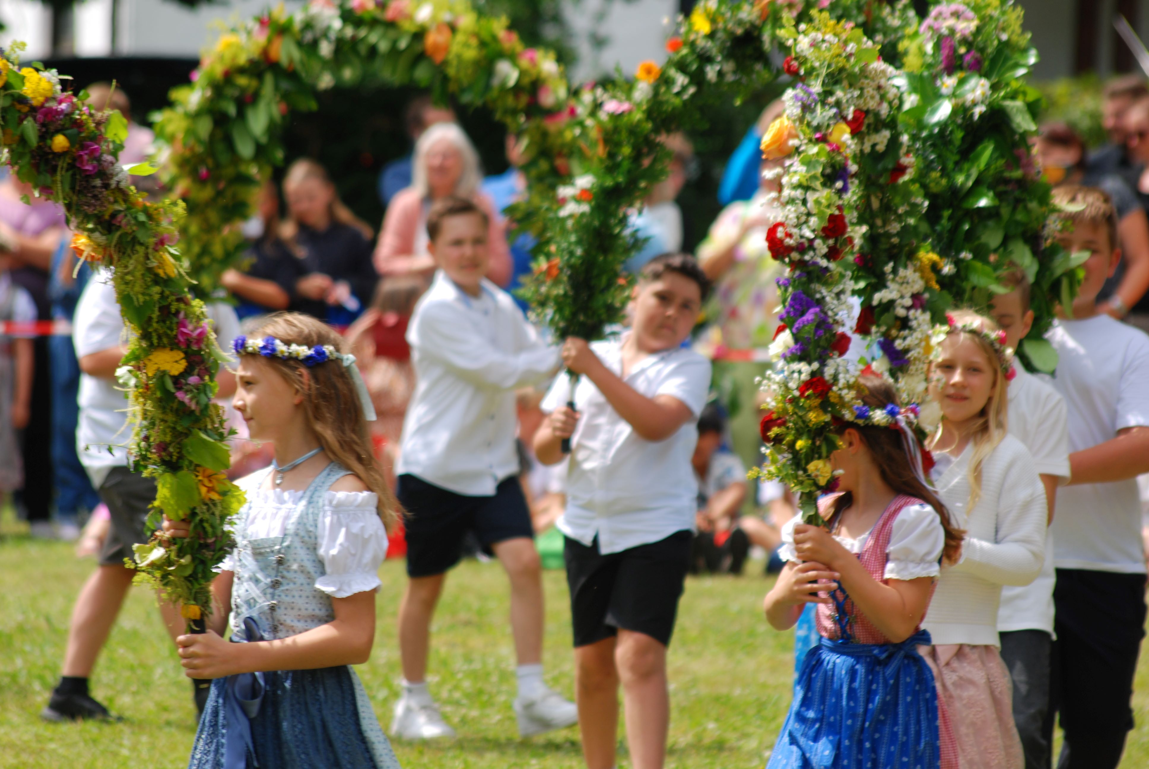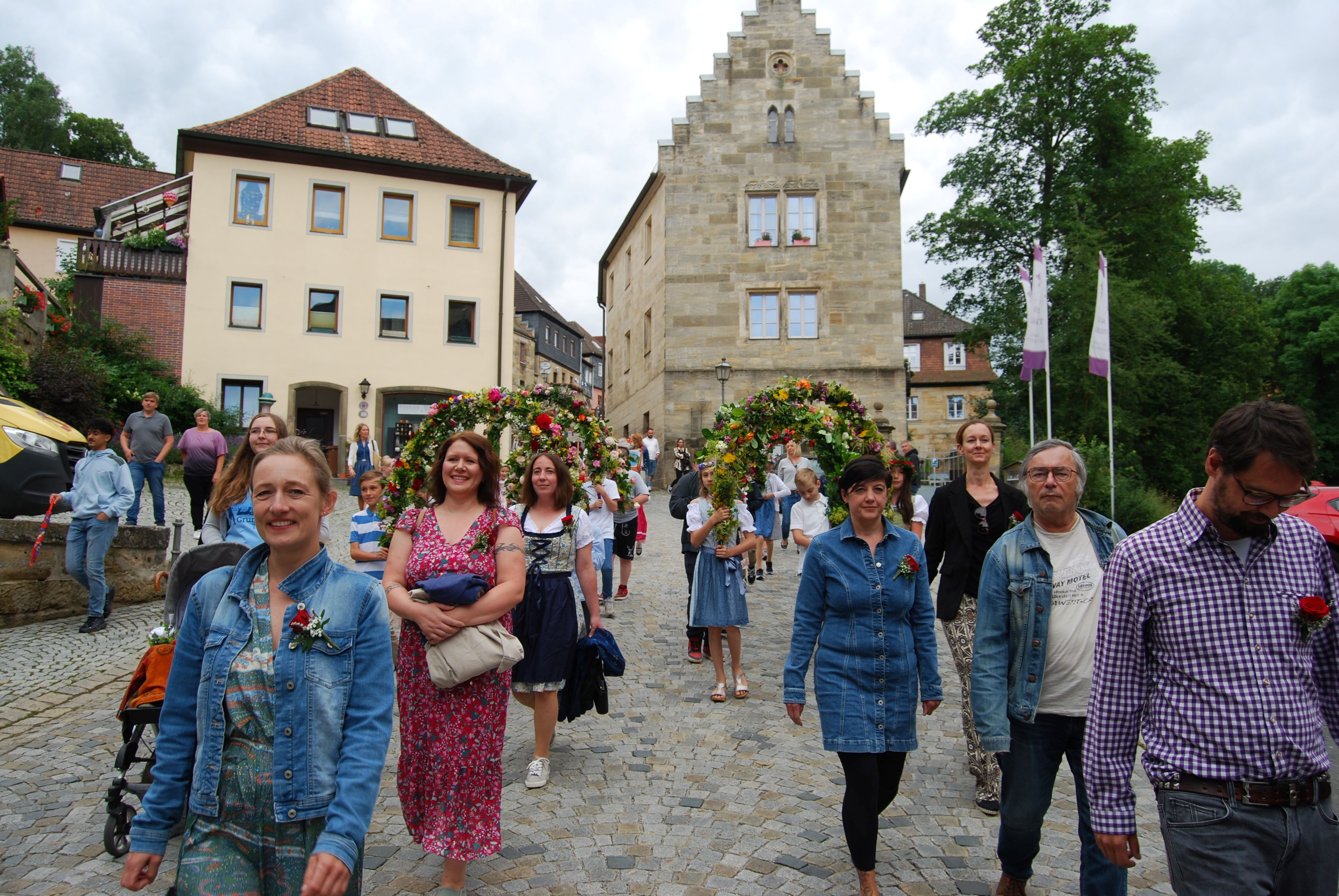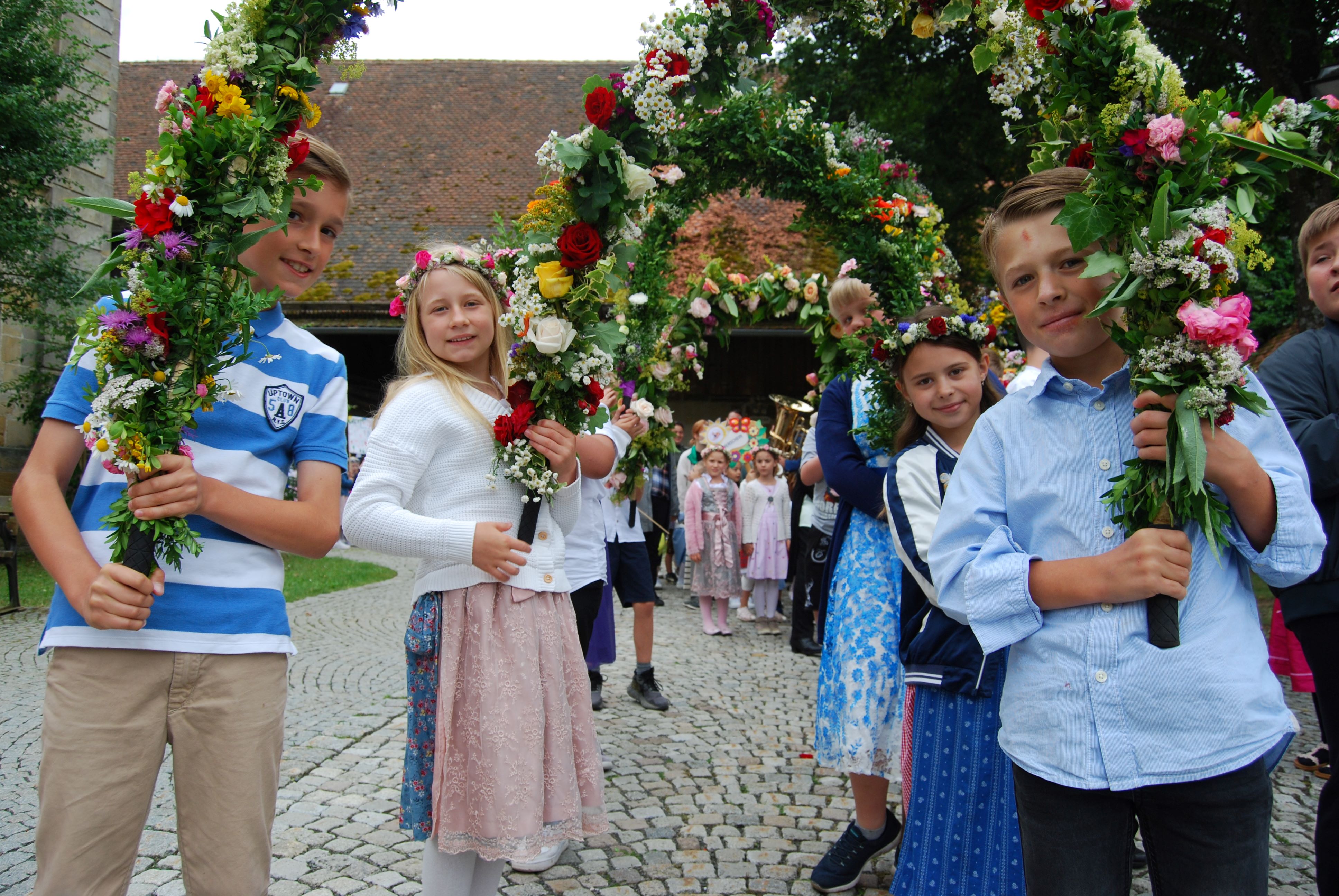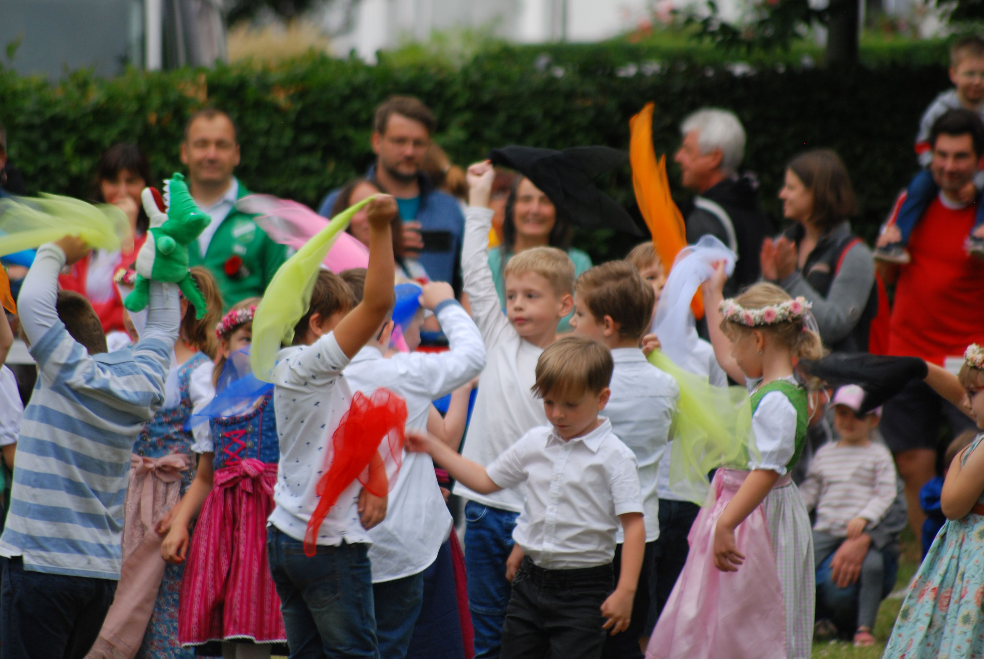 Mit Blumen oder Fahnen geschmückt zog der große Festumzug vom Rathaus zum Schützenplatz, voran die wunderschönen Bogenkränze der 4. Klasse. Fleißige Eltern hatte diese am Tag vorher liebevoll gebunden. Für die musikalische Begleitung sorgte natürlich unser Musikverein Thurnau mit seiner stimmungsvollen Blasmusik. Auf dem Festplatz wurden die Kinder von vielen Gästen herzlich begrüßt. Alle Klassen sangen gemeinsam das Gregori-Lied und zwei Kinder der 4a trugen das Gregori-Gedicht vor. Anschließend präsentierten unsere Schüler klassenweise ihre eingeübten Tänze. Zum Abschluss des Programmes begeisterten unsere beiden Bläserklassen unter der Leitung von Herrn Bierwirth die Zuhörer. Der Gartenbauverein übernahm mit Hilfe vieler tüchtiger Kuchenbäckerinnen die Bewirtung mit Kaffee und leckerem Kuchen. Verschiedene Spielstationen standen für alle Kinder bereit. Den Abschluss fand das Gregori-Fest mit dem Fackelumzug am Abend, bei dem die Bogenkränze von den Kindern zerpflückt werden.