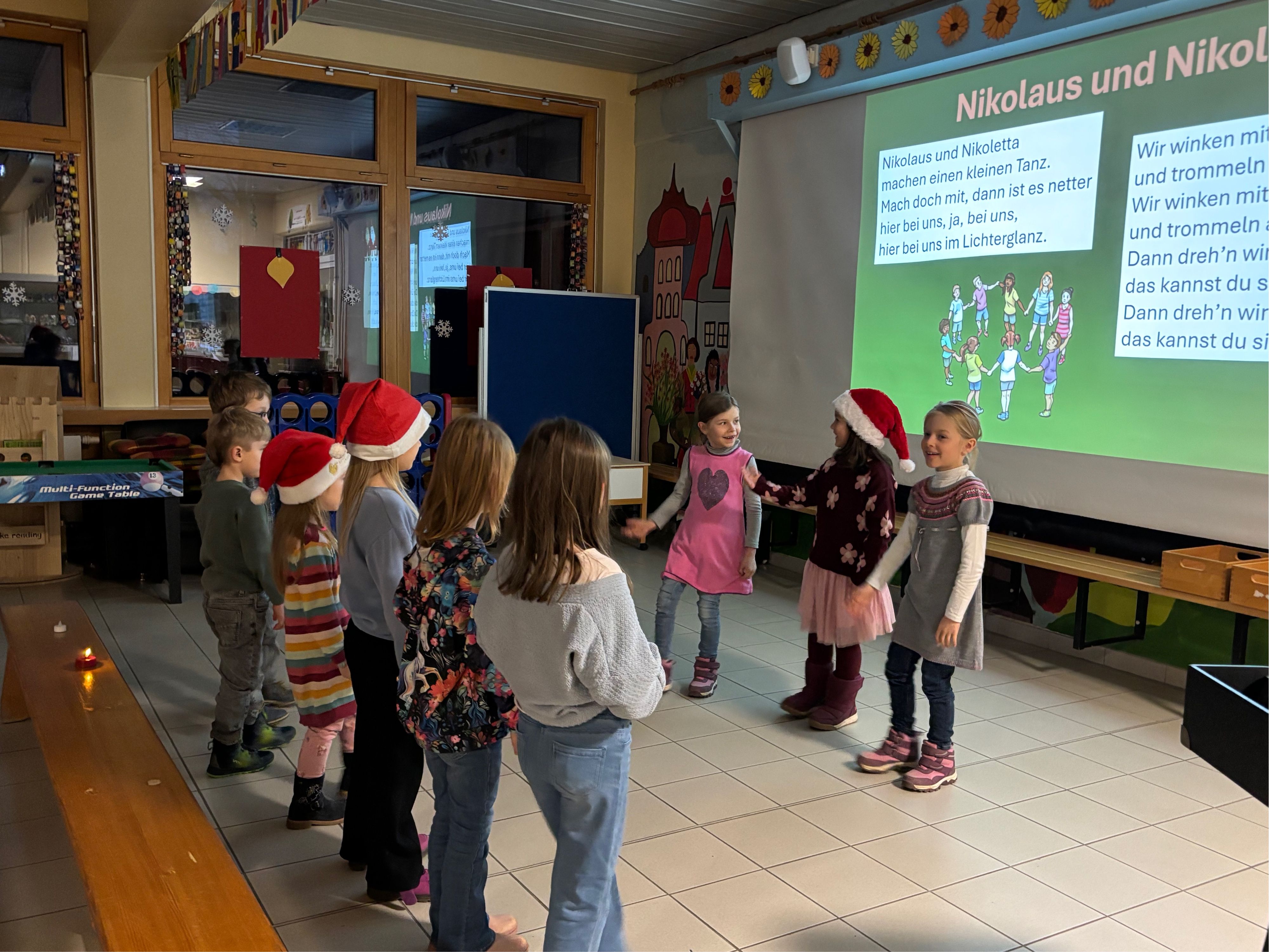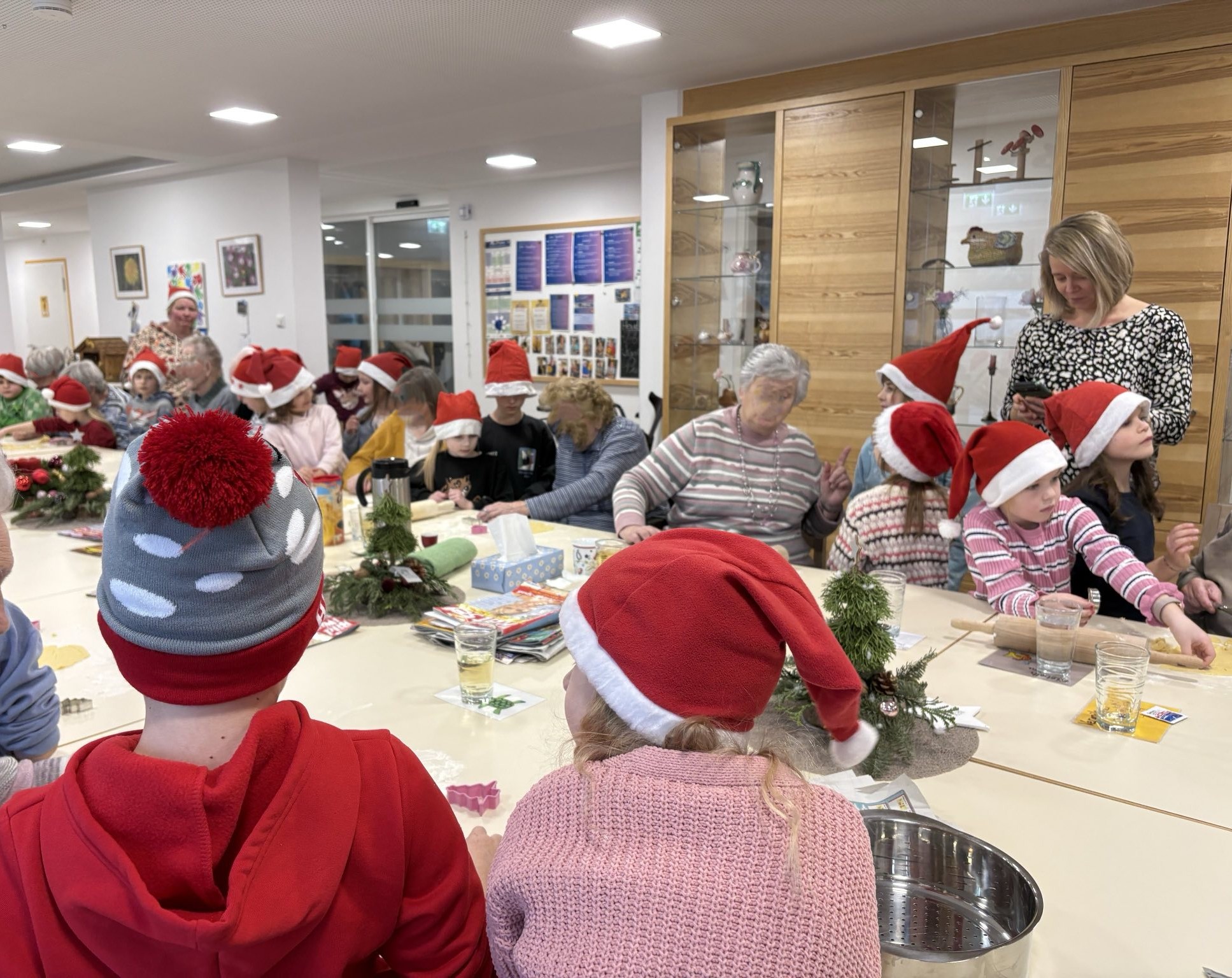 In der Adventszeit zog ein Hauch von weihnachtlichen Düften und Klängen sowie Vorfreude durch unser Schulhaus. Der Elternbeirat lud wieder zum gemeinsamen Backen in die Schulküche ein, die leckeren Plätzchen wurden dann auf dem Weihnachtstöpfermarkt angeboten. An den Sinn der Weihnachtszeit erinnerten wir uns am Montagmorgen in unseren kleinen Adventsandachten in der Aula. Für die Hilfsorganisation „Humedica“ übergaben wir 62 Geschenke mit Herz. Vielen Dank an alle fleißigen Päckchenpacker! Den braven Kindern unserer Schule (also allen) brachte der Nikolaus kleine Geschenke. Wir danken sehr! Traditionelle und moderne weihnachtliche Lieder stimmten wir zusammen mit Eltern, Großeltern und Verwandten beim „Singen im Advent“ an. Die Gäste unserer Tagespflege erfreuten die beiden ersten Klassen mit einem vorweihnachtlichen Besuch. Es wurde gesungen, gebacken und geschnattert. Alle Klassen bastelten Weihnachtsschmuck und wir brachten jeweils ein kleines geschmücktes Christbäumchen ins Seniorendorf und zur Tagespflege. Auch in unserer Aula erstrahlte in diesem Jahr ein wunderschöner Christbaum und versetzte uns jeden Tag in Weihnachtsstimmung!