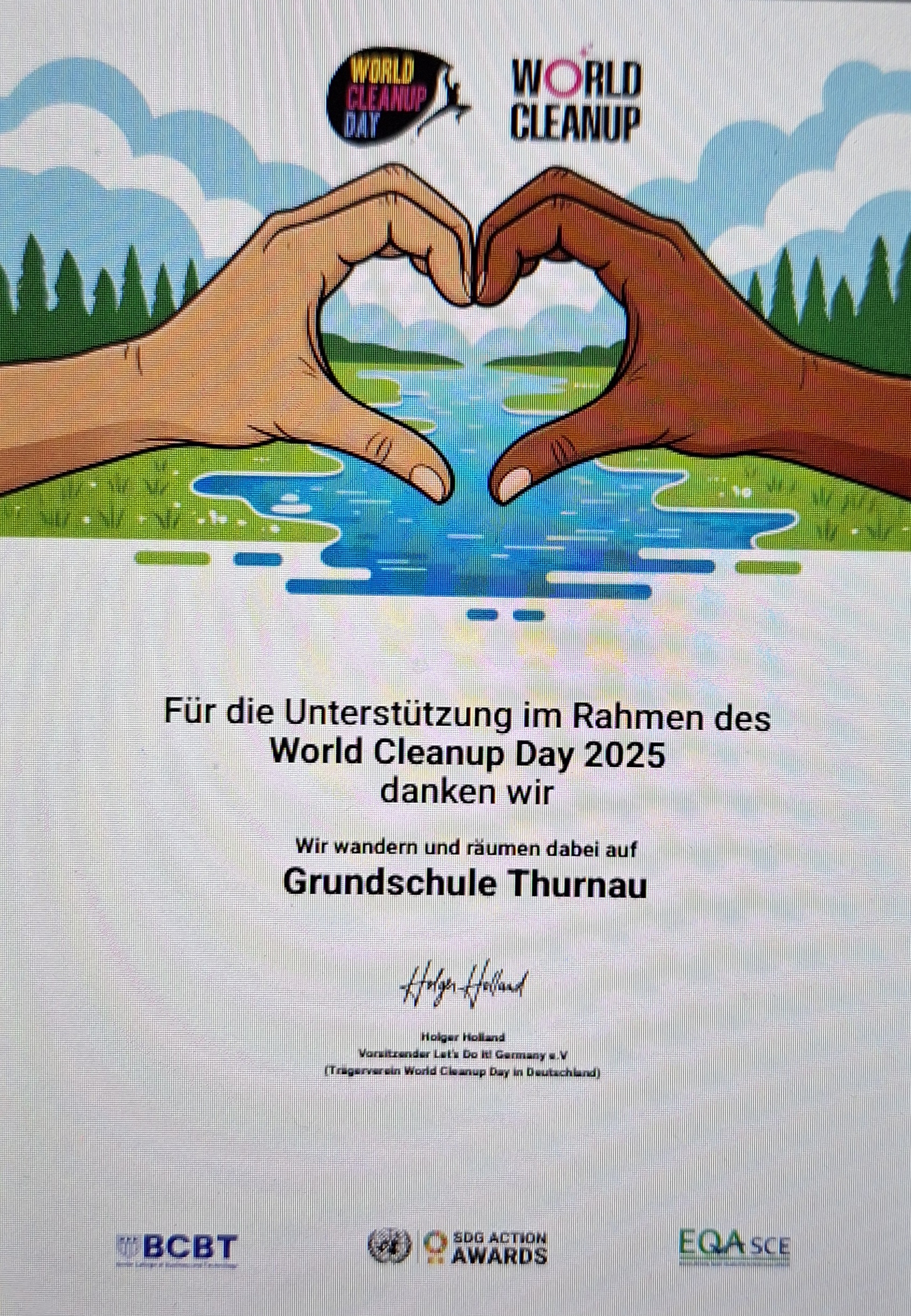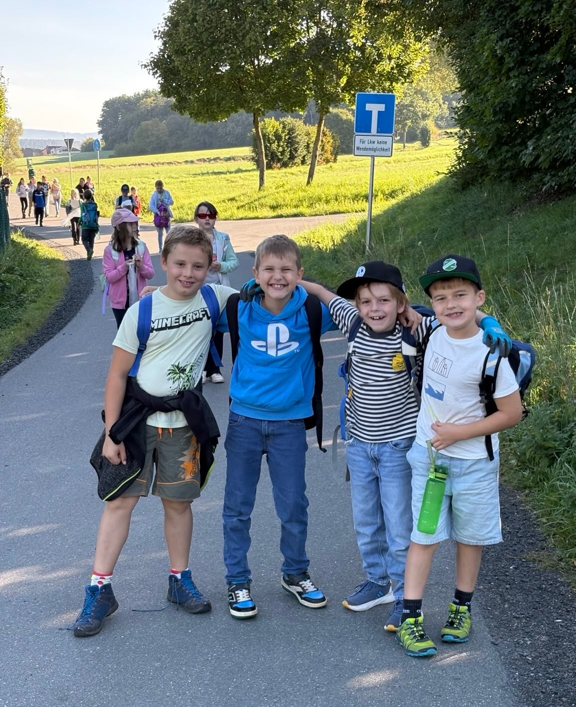 Bei wunderbarem Wanderwetter ging es für die gesamte Schule raus in die Natur. An diesem Freitag strahlten die Kinder mit der Sonne um die Wette. Die Klassen erkundeten ihre nähere Umgebung. Die beiden 1. Klassen liefen nach Limmersdorf zum Spielplatz. Dort wurde auf der Tanzlinde gefrühstückt. Ebenfalls Richtung Limmersdorf ging es für die Drittklässler. Sie hörten die Geschichte vom Fliegerdenkmal. Zur Aubachquelle wanderte die Klasse 2a und die 4. Klasse eroberte den Magnusturm in Kasendorf. Da sich unsere Schule wieder zum World-Cleanup Day angemeldet hatte, hieß es auch tüchtig Müll sammeln. Erfreulicherweise entdeckten wir nicht so viel Müll in Wald und Wiese, trotzdem brachten wir 3 kg zum Entsorgen mit in die Schule. Dafür gab es eine Urkunde dieser Aktion.